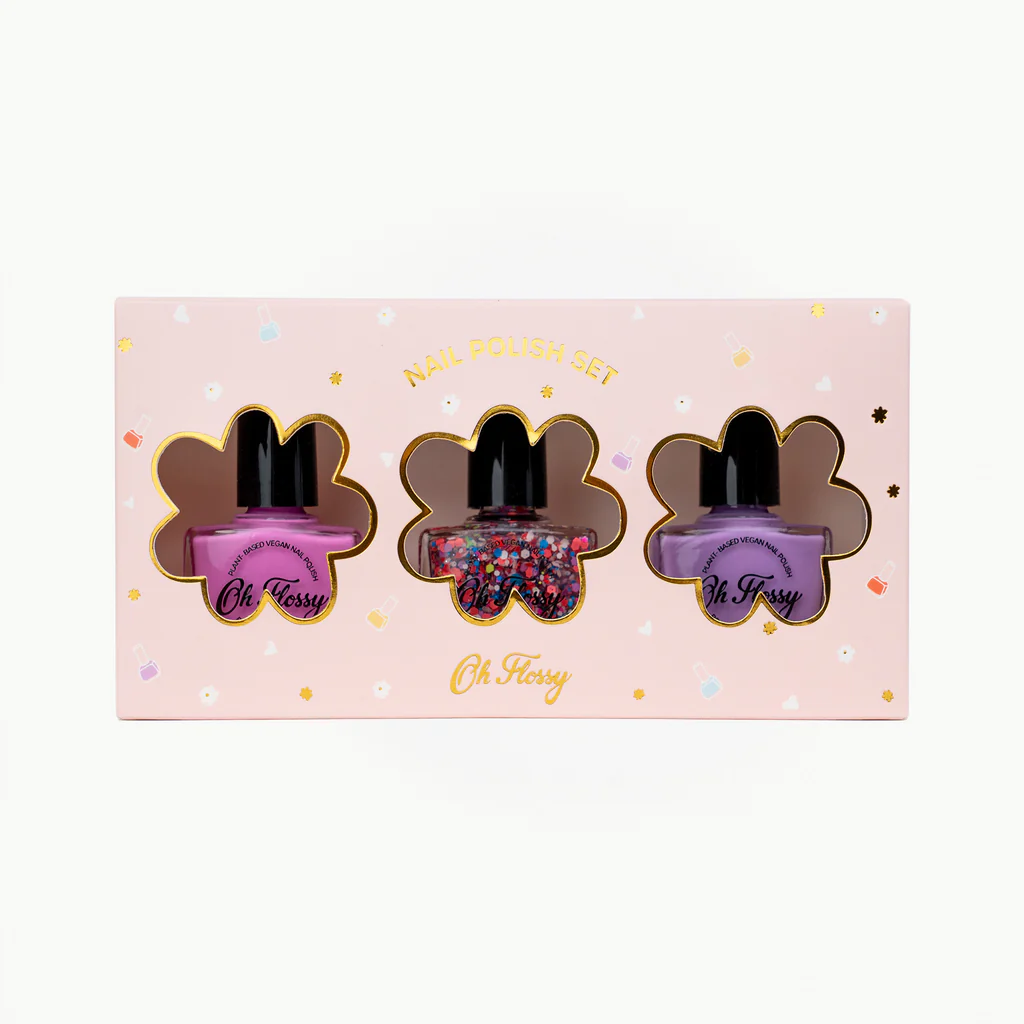 Looking for the perfect gift pack for your mani-loving little one? The fabulous Oh Flossy “Be Little, Shine Big” Kids Nail Polish is perfect for those little ones who love to play and be creative while keeping them away from unsafe chemicals (and your nail polish!)